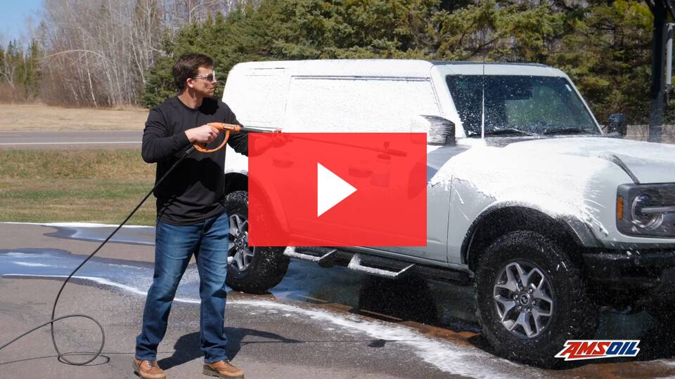 - Load foam cannon or foam gun with 2 oz. of AMSOIL High-Foam Car Shampoo and spray from the top down.